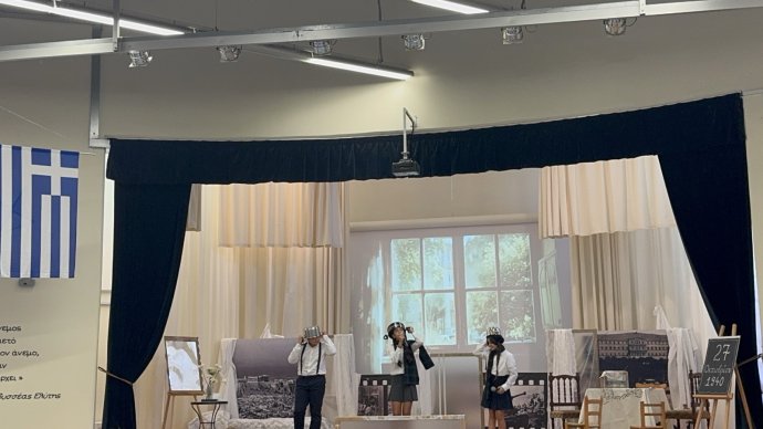 Στο πλαίσιο του ενδοσχολικού εορτασμού για την εθνική επέτειο της 28ης Οκτωβρίου τα παιδιά των Στ τάξεων παρουσίασαν τη θεατρική διασκευή του βιβλίου της Άλκης Ζέη « Ο μεγάλος περίπατος του Πέτρου». Οι μαθητές και οι μαθήτριες του Σχολείου μας ταξίδεψαν μαζί με τους ήρωες του βιβλίου στην Ελλάδα του ελληνοϊταλικου πολέμου, της κατοχής και της αντίστασης γνωρίζοντας τον αγώνα του ελληνικού λαού εναντίον του ναζισμού και επικράτηση της ελευθερίας και της δημοκρατίας.