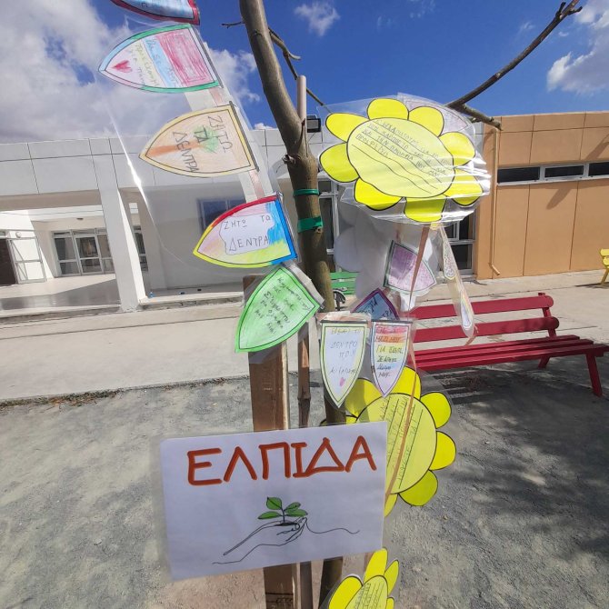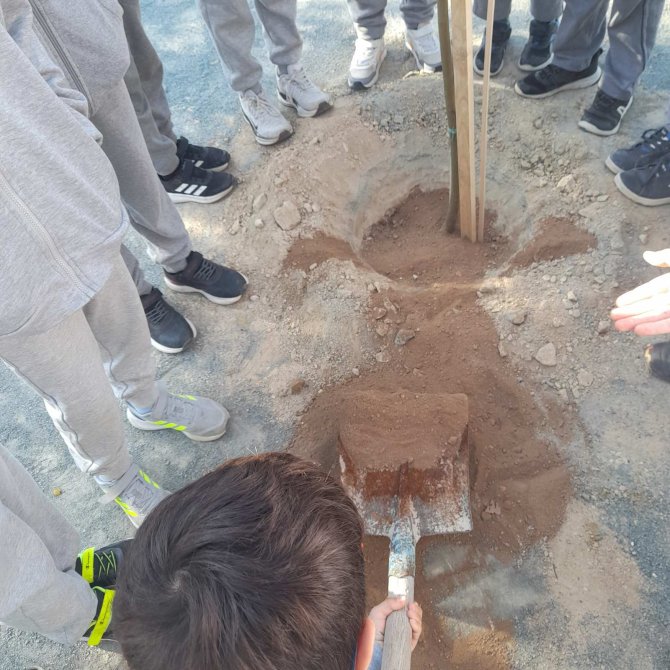 | Η αγάπη για τα δέντρα κι η περιβαλλοντική συνείδηση καλλιεργούνται από μικρή ηλικία. Στιγμιότυπα από τη δεντροφύτευση (11 Απριλίου 2025) με την παρουσία του δημάρχου Αραδίππου κ. Πάρτου. Τα παιδιά της Β'1 υιοθέτησαν ένα δεντράκι, το γνώρισαν, το φύτεψαν, το φρόντισαν, το ονόμασαν και το έντυσαν με τη δική τους αγάπη και φαντασία! ΖΗΤΩ ΤΑ ΔΕΝΤΡΑ! ΖΗΤΩ ΤΟ ΠΕΡΙΒΑΛΛΟΝ! |
