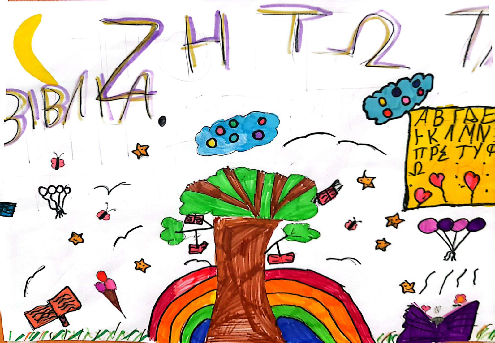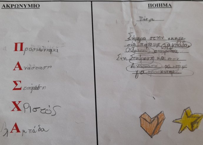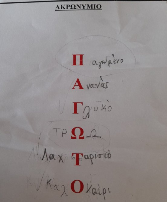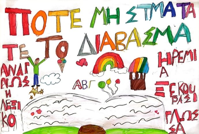 | Παίζοντας και διασκεδάζοντας μαθαίνουμε!! Δείγματα εργασιών από την Ημερίδα φιλαναγνωσίας που πραγματοποιήθηκε στο σχολείο μας στις 3 Απριλίου 2025, με αφορμή την παγκόσμια ημέρα Παιδικού βιβλίου (2 Απριλίου). Τα παιδιά γνώρισαν διάφορους κειμενικούς τύπους και παρήγαγαν τα δικά τους κείμενα, όπως ακρωνύμια, ποιήματα και εξώφυλλα βιβλίων. |