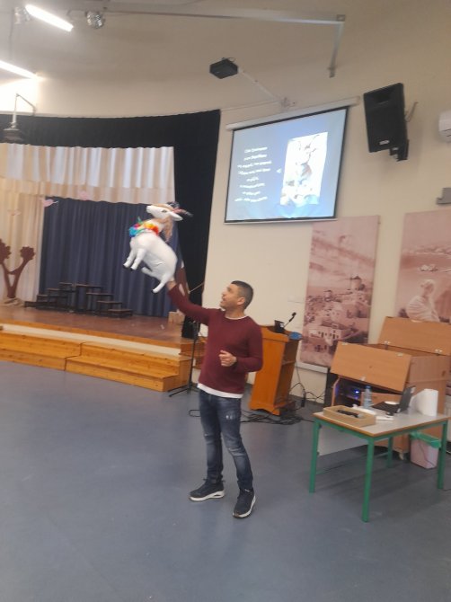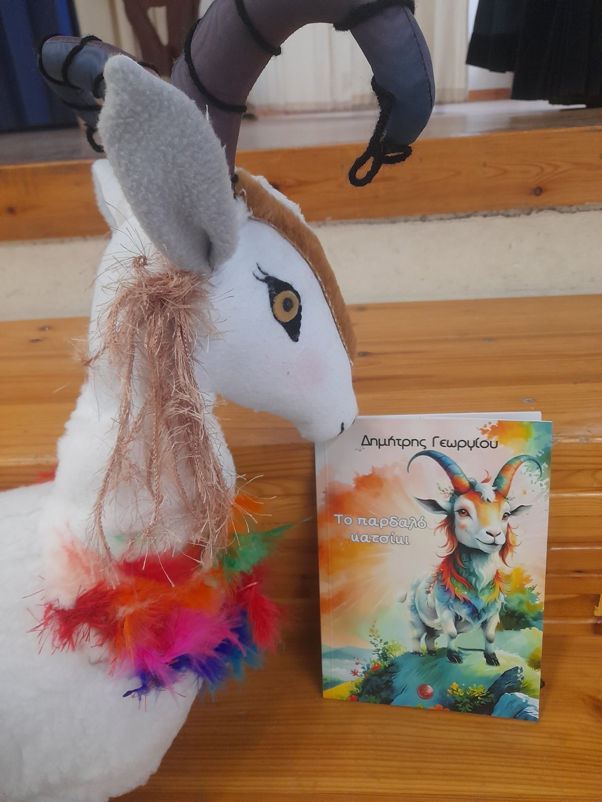 | Παρουσίαση του βιβλίου του "Το παρδαλό κατσίκι" και θεατρικό παιχνίδι από τον εκπαιδευτικό Δημήτρη Γεωργίου. |